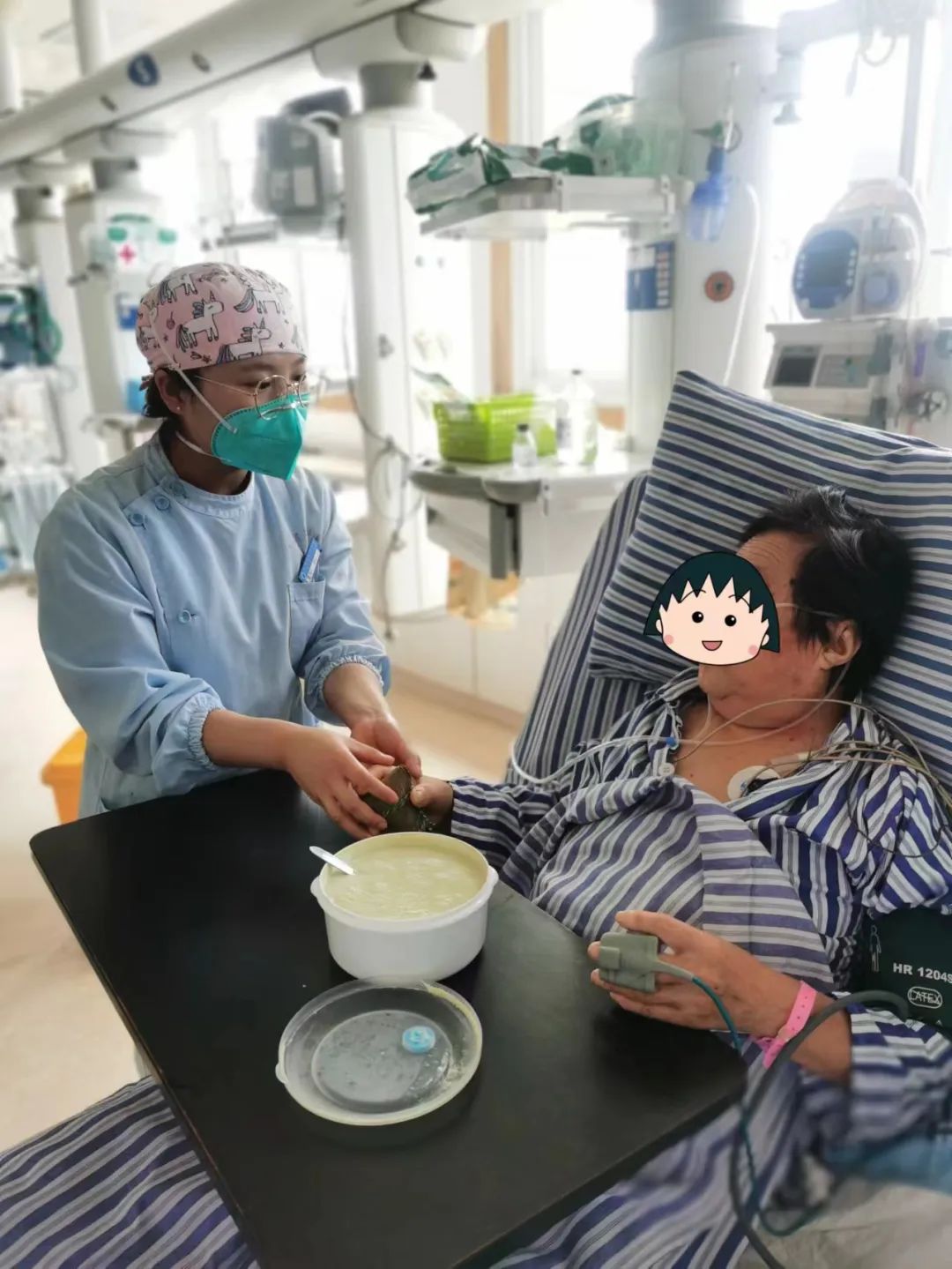 王婆婆在治療期間因抽搐、無(wú)法進(jìn)食以及拔管后的譫妄癥狀讓她異常難受,甚至情緒失控,將床單撕扯得雜亂不堪。科室的護(hù)士小姐姐就一直在旁鼓勵(lì)安慰,陪伴她一起度過(guò)這段最艱難痛苦的時(shí)期。