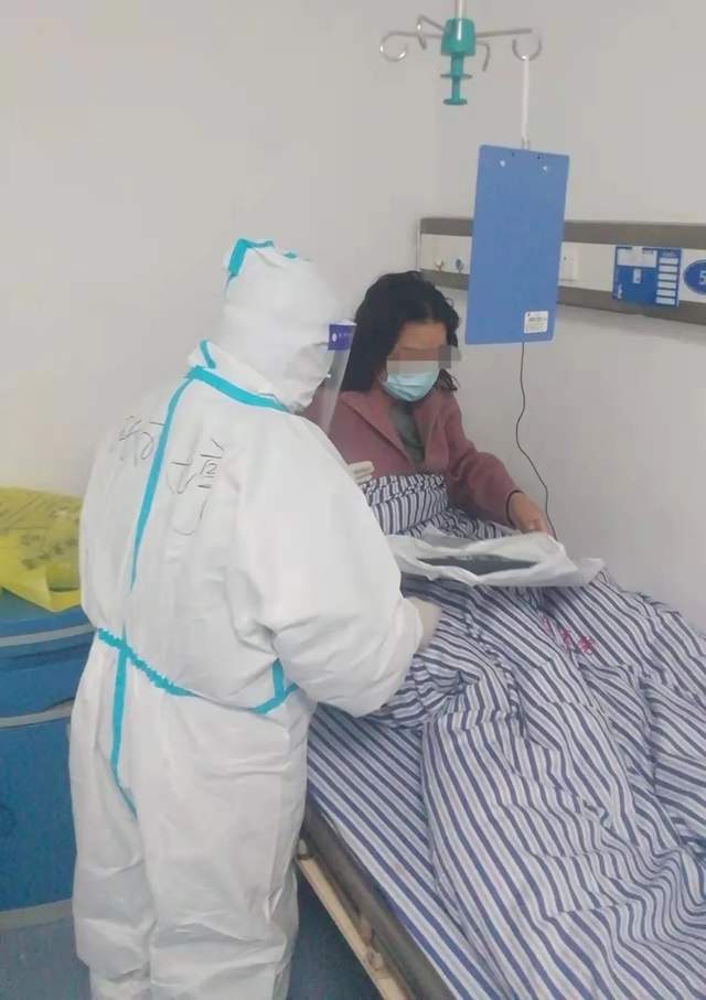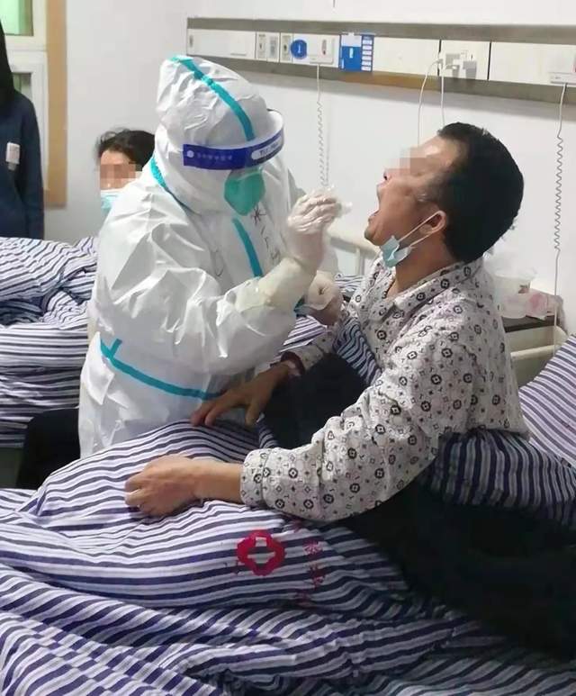 張麗婷醫(yī)生穿著厚厚的防護服,面對病房的100多位患者和家屬,開始了核酸采樣工作。