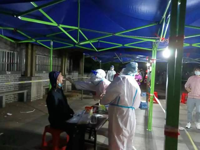 下午5點(diǎn)天氣驟變,陣陣涼風(fēng)吹在身上,不禁讓人瑟瑟發(fā)抖,但為了更快更好完成任務(wù),醫(yī)護(hù)人員一直忙碌到凌晨1點(diǎn)才吃上早已冰涼的盒飯。第二天早上7點(diǎn)又投入到采樣工作中,累了就靠著椅背緩緩,餓了就吃點(diǎn)快餐果腹,接著又投入戰(zhàn)斗。