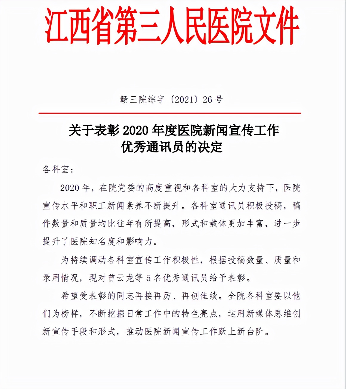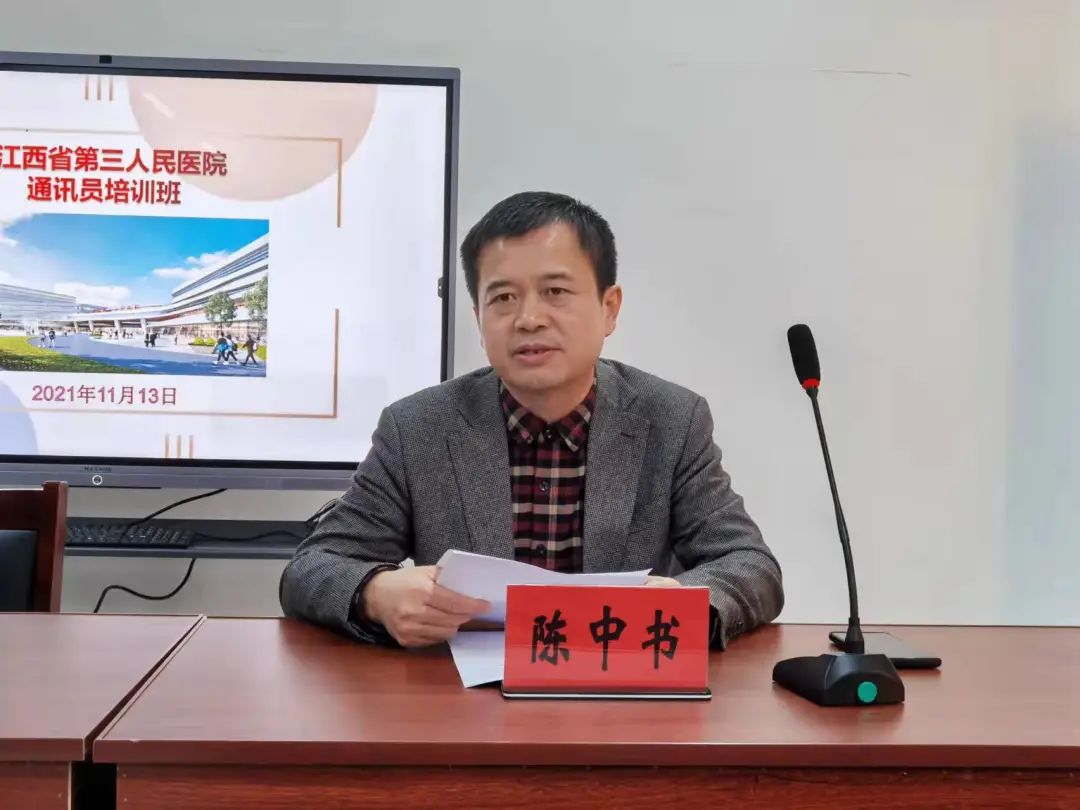 2021年11月13日,江西省第三人民醫(yī)院2021年度通訊員培訓(xùn)班在紅谷灘院區(qū)會議室舉行,院黨委書記郭貴周、副書記陳中書出席并講話。宣傳科副科長方育霞主持,醫(yī)院60余名通訊員參加培訓(xùn)。