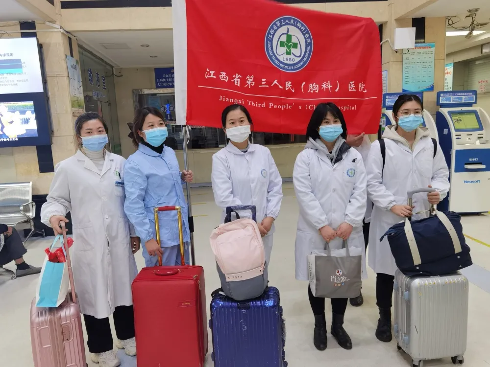 這是我院第二批出征上饒的醫(yī)療隊伍,醫(yī)院非常重視,快速響應,派出了來自醫(yī)療管理、院感防控和護理崗位的5名醫(yī)護人員,包括熊凌青、陳牡丹、陶芹、周折、楊寶芳。院領(lǐng)導到場送行,叮囑她們注意個人防護,早日完成任務(wù)平安歸來!