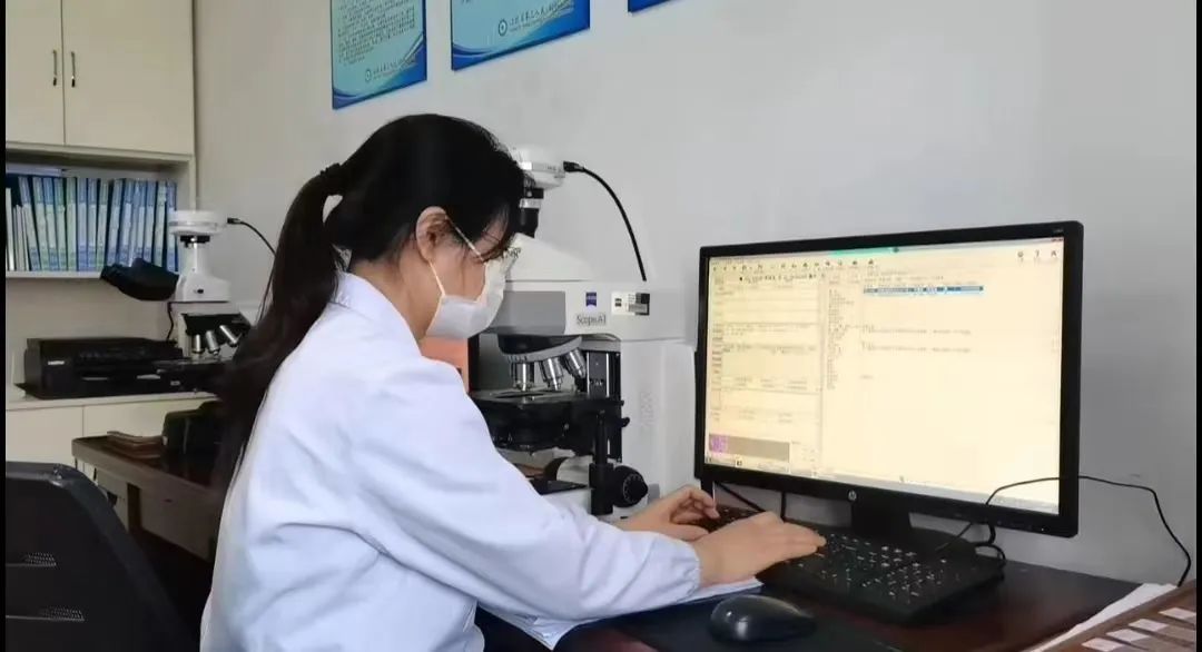 科主任劉翼軍居家辦公,卻不忘電話叮囑大家注意防暑降溫,做好個人防護;老黨員農(nóng)雪萍關鍵時刻積極踐行“一個黨員、一面旗幟”的先鋒模范作用,哪個崗位缺人她就及時補位,從不耽誤事情;李飛妹作為資深診斷醫(yī)師,負責所有診斷報告的復審和術中冰凍診斷,還要完成大部分細胞學標本的診斷。