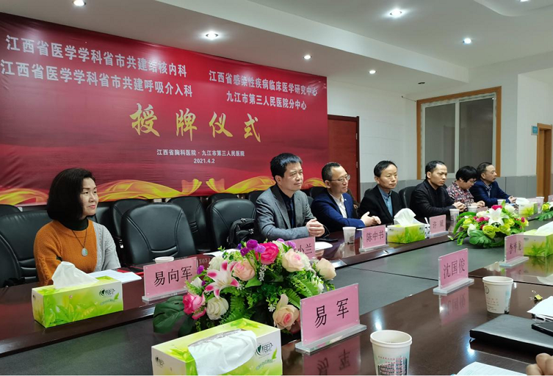 接著,江西省第三人民醫(yī)院向九江市第三人民醫(yī)院進(jìn)行了江西省感染性疾病臨床醫(yī)學(xué)中心九江分中心、江西省領(lǐng)先學(xué)科結(jié)核內(nèi)科省市共建學(xué)科、江西省領(lǐng)先學(xué)科呼吸介入科學(xué)省市共建學(xué)科、江西省呼吸介入專科醫(yī)聯(lián)體、江西省咯血急救聯(lián)盟的授牌。