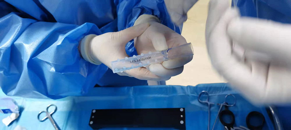 60歲的老彭因喉癌復(fù)發(fā)新生物堵塞氣道求治我院。全麻下清除新生物后成功植入加長縫制直筒硅酮支架一枚,放置后鏡下所見完美貼合,打開了生命通道,成功解除了危機(jī)。