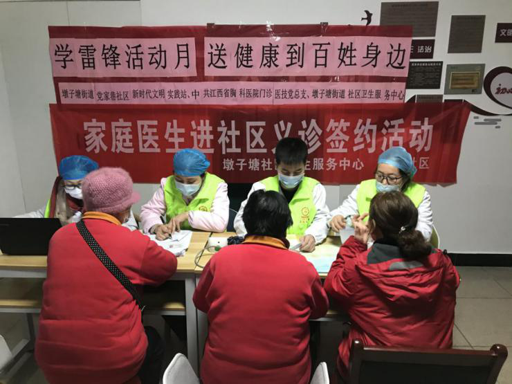 3月5日,在第58個(gè)“學(xué)雷鋒紀(jì)念日”,江西省胸科醫(yī)院社區(qū)衛(wèi)生服務(wù)中心醫(yī)務(wù)人員與門診醫(yī)技黨支部志愿者們深入黨家巷社區(qū)聯(lián)合開展“學(xué)雷鋒活動(dòng)月 送健康到百姓身邊”和“家庭醫(yī)生進(jìn)社區(qū)簽約”活動(dòng)。下午2:30時(shí),參加活動(dòng)的醫(yī)務(wù)人員冒著大雨來到黨家巷社區(qū),來參加活動(dòng)的居民熱情度非常高。醫(yī)務(wù)人員先后給開展了以“中醫(yī)養(yǎng)生保健”為主題的健康教育課堂、家庭醫(yī)生簽約和健康體檢,向居民詳細(xì)介紹國(guó)家基本公共衛(wèi)生服務(wù)政策和家庭醫(yī)生簽約服務(wù)的目的、意義及參與方法,為居民傳授中醫(yī)養(yǎng)生防病的相關(guān)知識(shí)和養(yǎng)生方法。并為大家免費(fèi)測(cè)血壓、血糖、體質(zhì)指數(shù)。針對(duì)居民的不同健康狀況,中心醫(yī)務(wù)人員耐心細(xì)致地進(jìn)行分析,并提出了針對(duì)性生活方式指導(dǎo)和醫(yī)療保健建議。