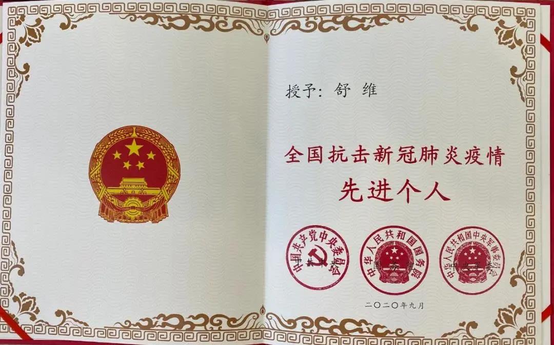 “獲得黨中央、國務院、中央軍委隆重表彰,心情非常激動!這次獲得國家授予的抗疫先進個人榮譽,深感榮幸和鼓勵,這不僅是對我個人抗擊新冠肺炎疫情付出的認可,更是對我省廣大醫(yī)務工作者和江西省胸科醫(yī)院全體干部職工的信任和肯定。本次戰(zhàn)‘疫’取得決定性成果,取決于以習近平同志為核心的黨中央堅強領(lǐng)導,取決于大家精誠團結(jié),敢于斗爭、敢于勝利。只要我們時刻堅持黨的領(lǐng)導,堅持人民至上、生命至上,充分發(fā)揮黨員干部的戰(zhàn)斗力和創(chuàng)造力,任何困難都壓不倒我們。”在北京人民大會堂外,江西省第三人民醫(yī)院、南昌大學附屬胸科醫(yī)院呼吸科黨支部書記、副主任醫(yī)師舒維手捧著沉甸甸的榮譽證書,激動地說道。