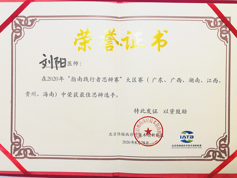 日前,由北京結(jié)核病診療技術(shù)創(chuàng)新聯(lián)盟、中華醫(yī)學(xué)會(huì)結(jié)核病分會(huì)主辦、中南大學(xué)湘雅二醫(yī)院和湖南省胸科醫(yī)院承辦的“協(xié)和杯”2020指南踐行者思辯賽中部大區(qū)賽落下帷幕。由廣東、廣西、湖南、江西、貴州等5省共10名選手共匯湘岳。江西省胸科醫(yī)院內(nèi)五科副主任醫(yī)師劉陽代表江西出戰(zhàn),最終奪得中部賽區(qū)的“最佳思辯選手”,將于11月參加全國(guó)總決賽。在此之前,劉陽以江西賽區(qū)第一的身份晉級(jí)中部大區(qū)賽。
