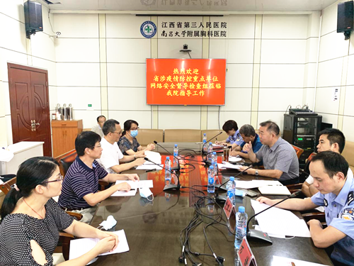 8月19日上午,省公安廳警務(wù)技術(shù)二級(jí)總監(jiān)(副廳級(jí))吳國(guó)強(qiáng)率省網(wǎng)信辦網(wǎng)絡(luò)協(xié)調(diào)處、公安廳網(wǎng)安總隊(duì)專家和技術(shù)人員一行到我院開(kāi)展2020年網(wǎng)絡(luò)安全監(jiān)督檢查和涉疫情防控重點(diǎn)單位網(wǎng)絡(luò)安全專項(xiàng)督導(dǎo)檢查工作。
