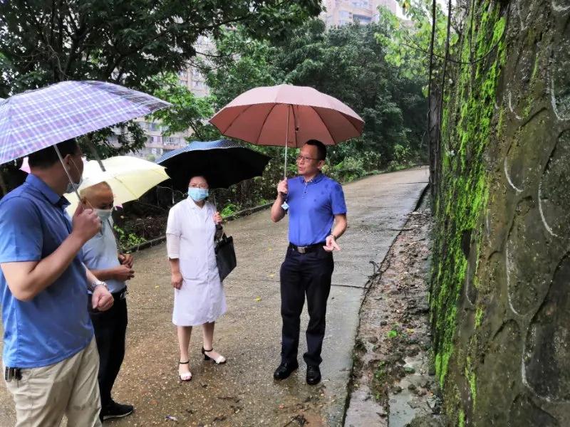 雨情就是命令,防汛就是責(zé)任。7月8日一大早,院長許斌、副院長劉火森率院辦(綜治辦)、總務(wù)科、項(xiàng)目辦、保衛(wèi)科等相關(guān)科室負(fù)責(zé)人冒雨趕往紅谷灘院區(qū)停車場(chǎng)、沿山坡等地段現(xiàn)場(chǎng)查看安全隱患險(xiǎn)情,指導(dǎo)險(xiǎn)情防范處置。
