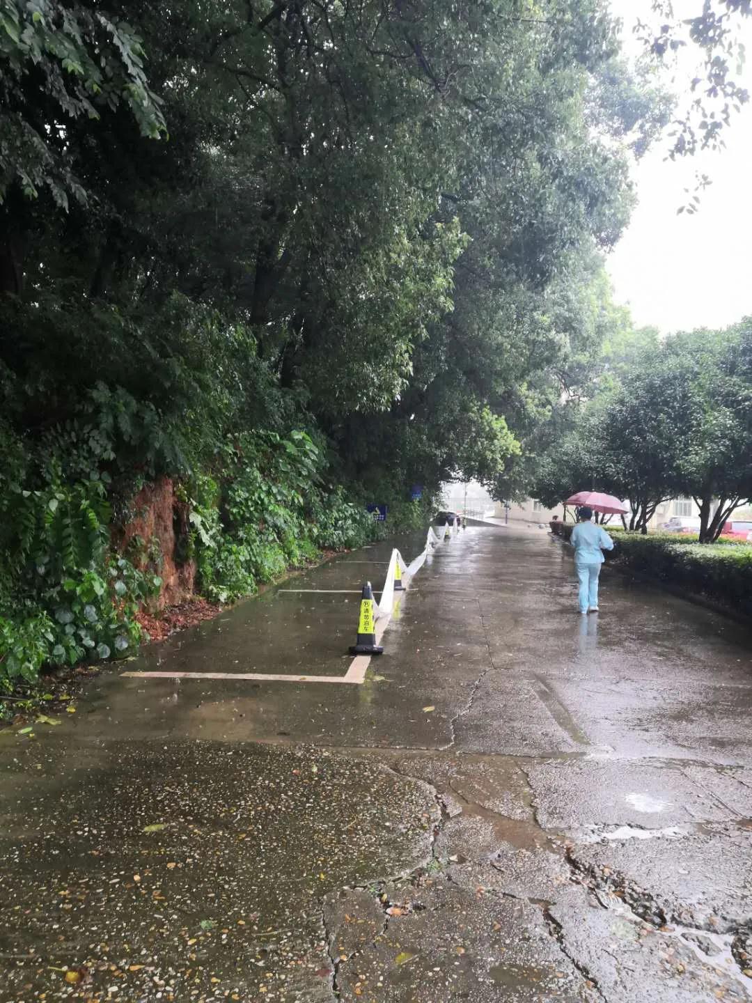 由于暴雨導(dǎo)致腫瘤樓旁邊山體出現(xiàn)滑坡,五顆樹木同時(shí)倒塌。其中有樹枝壓住了一輛停放在附近的車輛。科室立即組織人員將樹枝鋸斷,樹木移開后車輛安全駛離現(xiàn)場(chǎng),并拉好警戒線。同時(shí),通知各病區(qū)將停于低位易積水的所有車輛駛離。因有部分車輛無法聯(lián)系到車主被淹,保衛(wèi)科同志及時(shí)組織人員排水,目前道路已保持暢通。