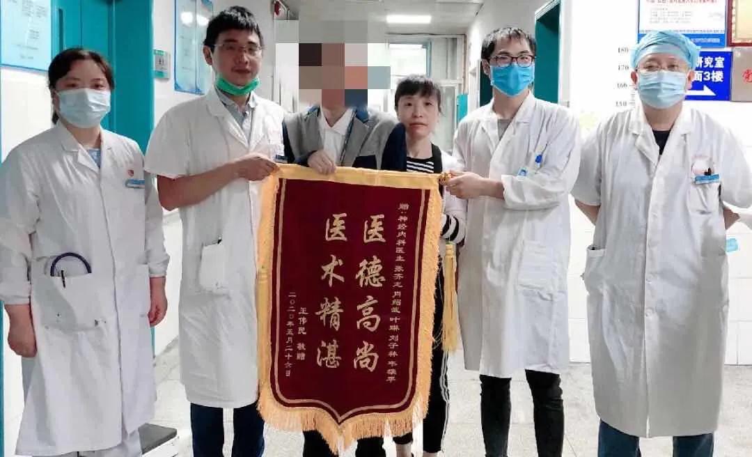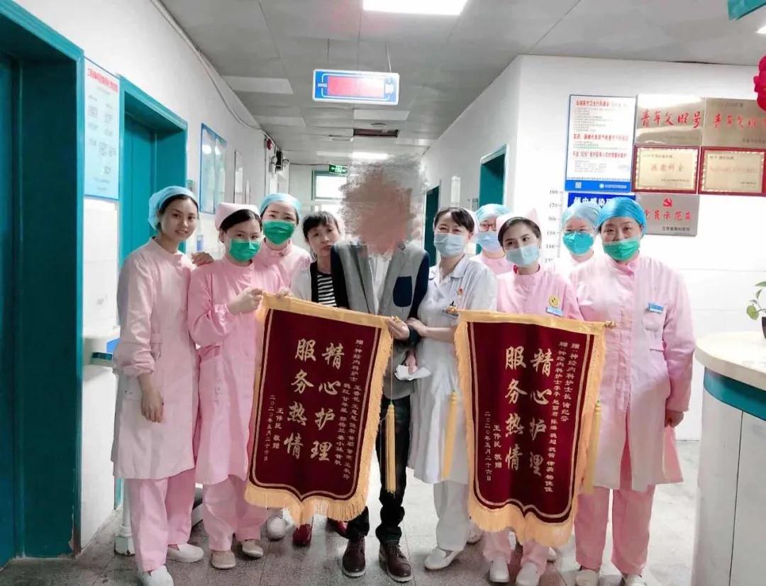 2020年5月26日上午,艷陽高照,肆虐的疫情還未結(jié)束,神經(jīng)內(nèi)科迎來了三面紅彤彤的錦旗。燙金的大字熠熠發(fā)光---“醫(yī)術(shù)精湛 醫(yī)德高尚”、“服務(wù)熱情 精心護理”......當患者家屬把這三面錦旗,交到工作人員手中的時候,大家都特別激動。因為它來之不易。作為醫(yī)者,我們目睹了患者整個治療過程,異常曲折艱辛,曾多次與死神擦肩而過,從不放棄到并肩戰(zhàn)斗直到勝利。現(xiàn)在回想起來,那一幕幕仍清晰地浮現(xiàn)在眼前。