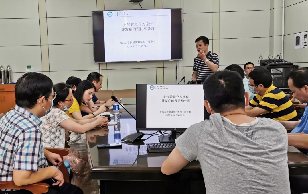 6月28日下午,在我院門診十樓會議室召開了呼吸內鏡醫(yī)療質量與安全管理專題會議,醫(yī)務科科長鐘福初主持,副院長陳中書到會并講話,院感科及各科室有呼吸內鏡診療技術授權的人員約50余人參加。會議對近期呼吸內鏡室工作情況總結分析、征求意見建議,并結合疫情常態(tài)化防控要求作相關工作部署。 會上,副院長陳中書結合目前國內疫情防控形勢,總結分析了我院內鏡室的防控措施、工作成效及存在的問題。并以臨床問題為導向,分享討論了支氣管鏡介入治療并發(fā)癥的預防與處理,警示各位操作醫(yī)師進行內鏡操作時嚴格適應癥,做好病情溝通與必要的應急準備。