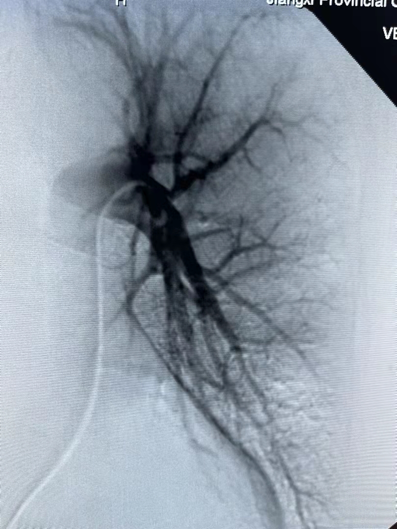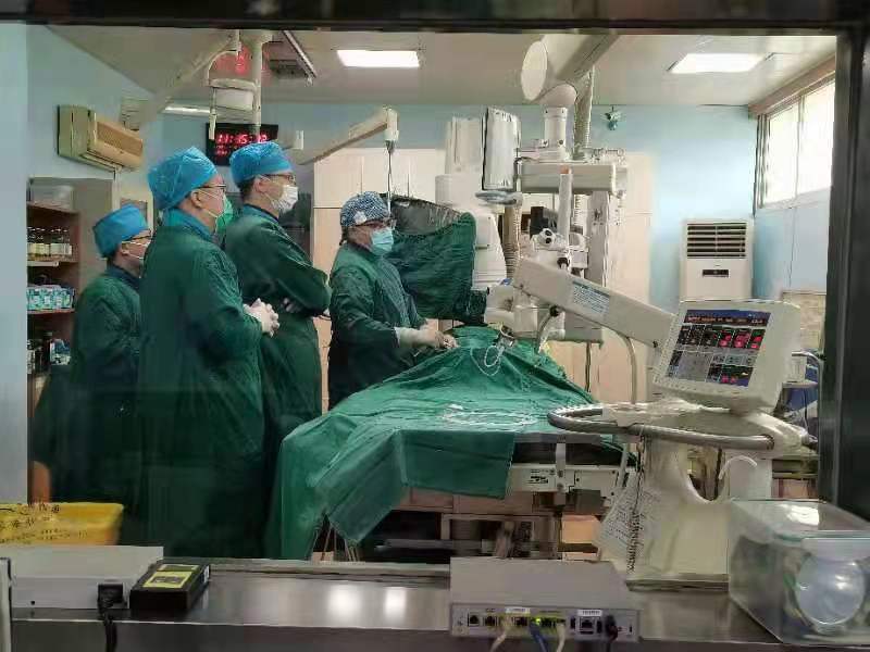 近日,門診收治了一位咯血的老奶奶到介入血管科。時逢周六,醫(yī)生出于安全考慮立即安排增強CT,檢查提示肺隔離癥。這一較為少見的先天性疾病,既往治療以外科手術(shù)切除病變組織為主,考慮到患者年紀大,外科手術(shù)風(fēng)險大,介入血管科團隊經(jīng)慎重考慮予以實施血管栓塞術(shù)。在局麻下經(jīng)股動脈穿刺引入導(dǎo)管與導(dǎo)絲,導(dǎo)管與導(dǎo)絲配合插管至肺隔離癥的供血動脈內(nèi),經(jīng)造影證實屬于肺隔離癥的供血動脈后,選擇直徑大于各分支動脈20%的金屬彈簧圈,對其進行徹底栓塞。經(jīng)過一個多小時的奮戰(zhàn),終于順利完成手術(shù)。