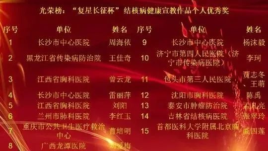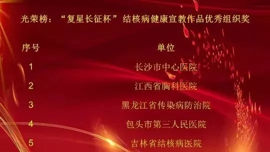 副主任醫(yī)師劉陽和主管藥師曾云龍榮獲“復(fù)星長征杯”優(yōu)秀結(jié)核病健康宣教作品大賽優(yōu)秀獎,我院獲優(yōu)秀組織獎。