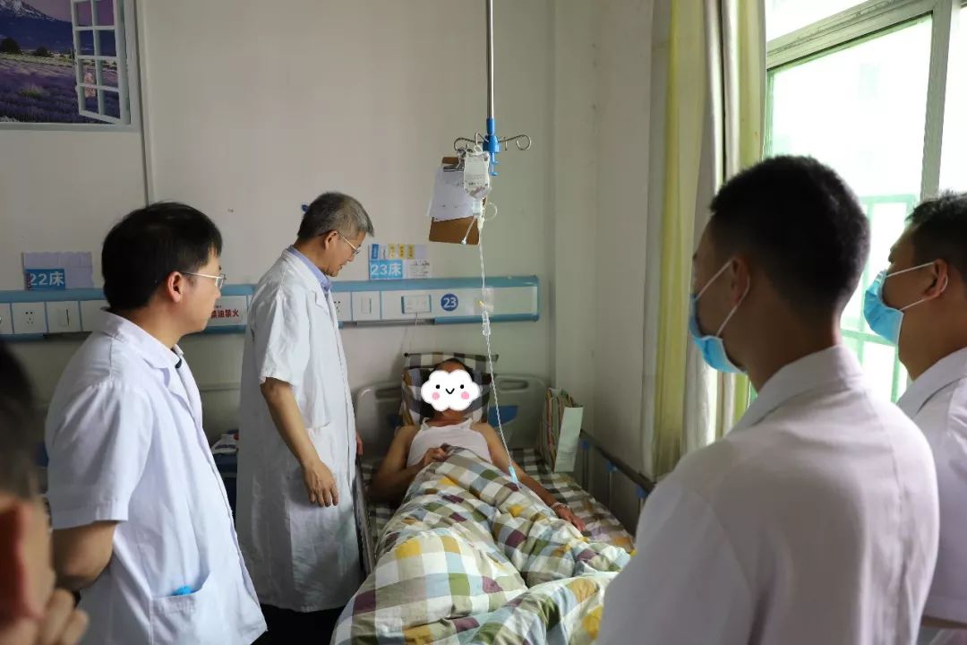 隨后,專家組一行來到外科病房進行教學查房,現(xiàn)場對在院的疑難病例進行會診和業(yè)務指導。韓斌德主任還看望了科室派駐安遠對口支援幫扶的胡晨醫(yī)師,親切問候其工作和生活情況。