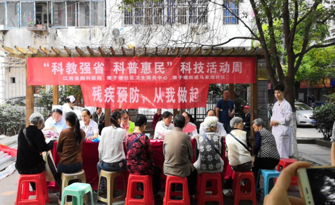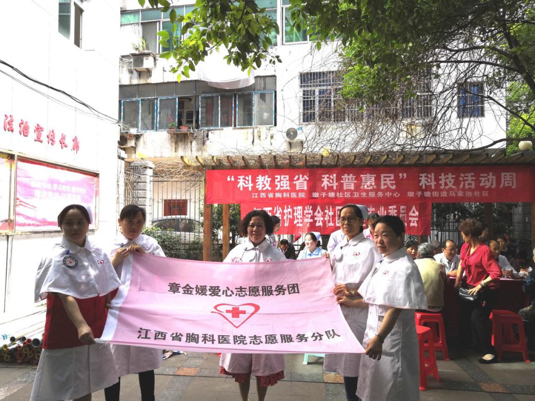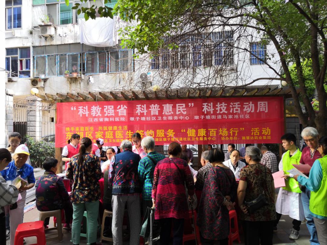 在這一年一度的科技活動(dòng)周,江西省胸科醫(yī)院墩子塘社區(qū)衛(wèi)生服務(wù)中心按照東湖區(qū)衛(wèi)健委開展的家庭醫(yī)生簽約服務(wù)“健康百場(chǎng)行”活動(dòng)要求,于2019年5月21日聯(lián)合江西省護(hù)理學(xué)會(huì)社區(qū)專業(yè)委員會(huì)、江西省胸科醫(yī)院、墩子塘街道馬家池社區(qū)在馬家池休閑廣場(chǎng)共同舉辦了以“科教強(qiáng)省 科普惠民”為主題的義診咨詢活動(dòng)。本次活動(dòng)邀請(qǐng)了江西省護(hù)理學(xué)會(huì)社區(qū)專業(yè)委員會(huì)的護(hù)理專家、江西省胸科醫(yī)院心血管、胸外科、乳腺外科、呼吸科等醫(yī)學(xué)專家以及墩子塘社區(qū)衛(wèi)生服務(wù)中心的全科醫(yī)生及護(hù)士參加。