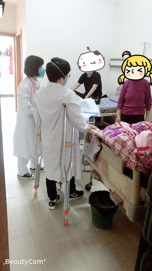 春天對(duì)于各種傳染病來說屬于高發(fā)季節(jié),此時(shí)的江西省胸科醫(yī)院內(nèi)三科也面臨著大量病人的涌入。胡群芳了解到科室的情況,放心不下,拄著雙拐出現(xiàn)在科室。家人擔(dān)心她的身體狀況,讓她在家靜養(yǎng),她說:“我也是醫(yī)生,自己的身體自己最清楚,去上班就是聽我自己這個(gè)醫(yī)生的話。”于是內(nèi)三科就出現(xiàn)了一個(gè)拄著雙拐為病人看病的“拄拐醫(yī)生”。