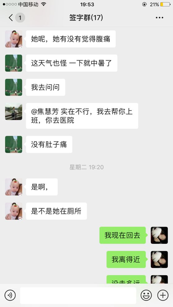 忽然手機提示音響起,群里蹦出一條消息:“我突然出血怎么辦,會不會有事呀?”發(fā)信息來的是正在值小夜班的同事焦慧芳,一個剛懷孕8周的新晉寶媽,經驗不足的她,慌了。