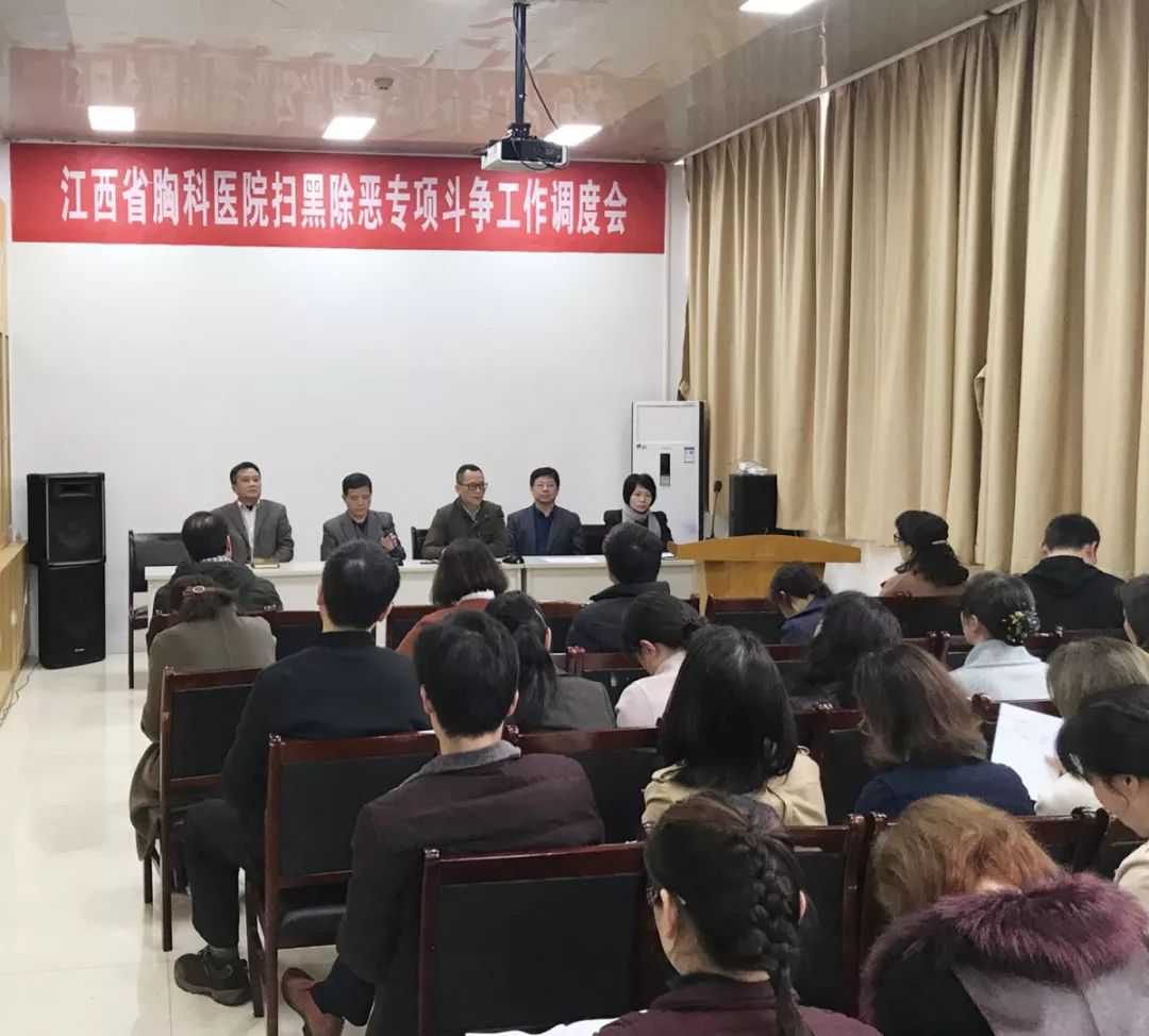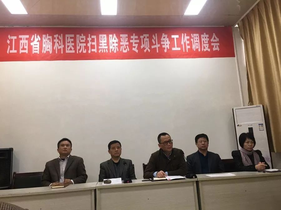 2019年3月28日,江西省胸科醫(yī)院召開掃黑除惡專項斗爭工作調度會。院黨委書記、掃黑除惡專項工作領導小組組長羅佑吾出席會議并講話,院長、掃黑除惡專項工作領導小組組長許斌主持會議并做工作部署。