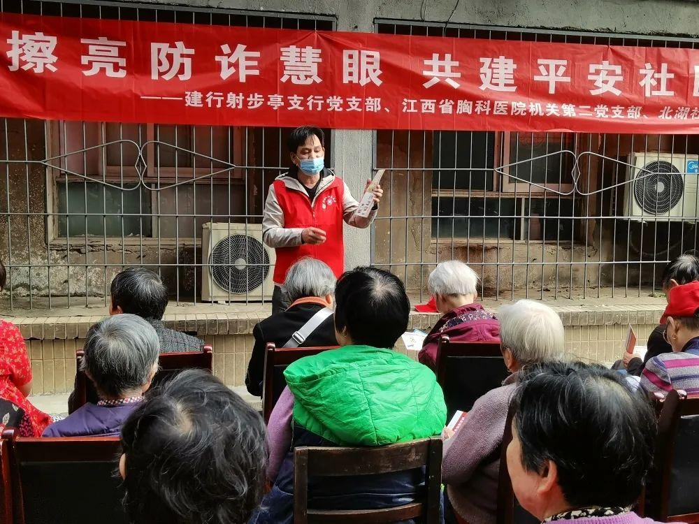 10月26日,江西省胸科醫(yī)院平安江西志愿者聯(lián)合建行射步亭支行,來到北湖社區(qū)開展平安宣傳進(jìn)社區(qū)志愿服務(wù)活動(dòng)。