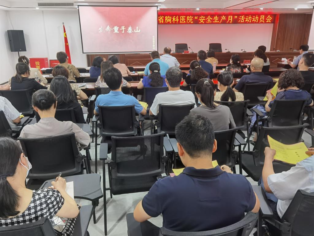今年6月是全國第22個“安全生產(chǎn)月”,主題為“人人講安全,個個會應(yīng)急”。6月8日,江西省胸科醫(yī)院(南昌醫(yī)學(xué)院第三附屬醫(yī)院)召開2023年“安全生產(chǎn)月”活動動員會,院長車達(dá)平及在家院領(lǐng)導(dǎo)班子成員出席會議,副院長劉火森主持會議,各科主任及護(hù)士長以上中層干部參加會議。