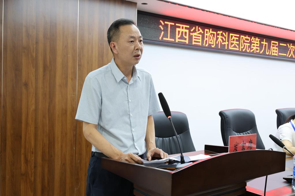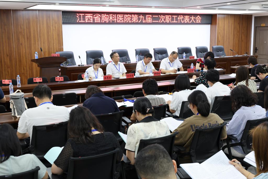 6月28日,江西省胸科醫(yī)院(南昌醫(yī)學(xué)院第三附屬醫(yī)院)第九屆二次職工代表大會(huì)成功召開(kāi)。院黨委書(shū)記郭貴周、院長(zhǎng)車(chē)達(dá)平及在家的院領(lǐng)導(dǎo)班子成員出席會(huì)議,黨委副書(shū)記陳中書(shū)主持會(huì)議。醫(yī)院職工正式代表、列席代表170余人齊聚一堂,充分行使民主權(quán)利,廣泛凝聚思想共識(shí),共謀醫(yī)院發(fā)展大計(jì),以新氣象新作為為醫(yī)院高質(zhì)量發(fā)展貢獻(xiàn)力量。