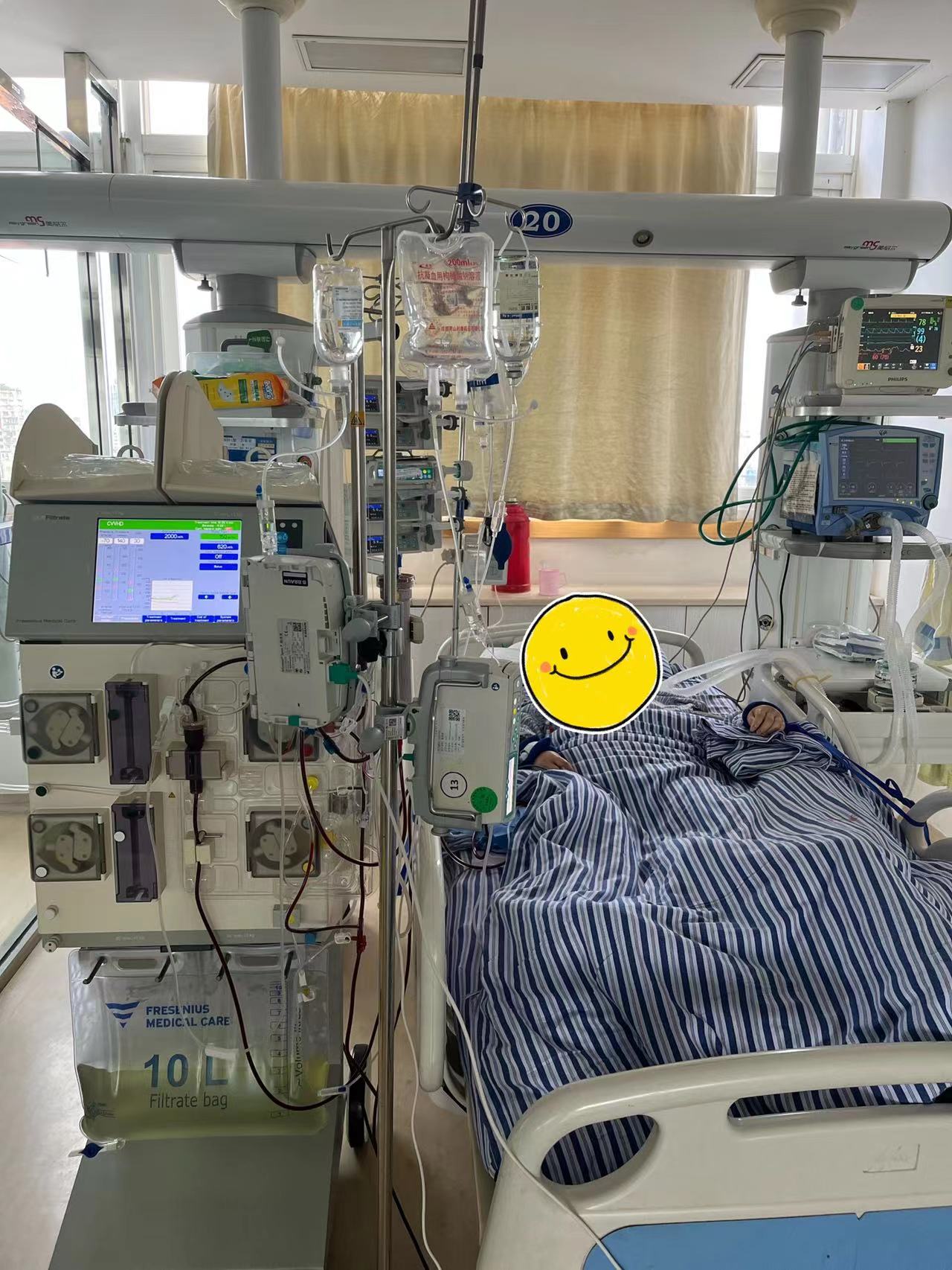 6月25日8:25分,江西省胸科醫(yī)院重癥醫(yī)學(xué)科緊急轉(zhuǎn)入一肺癌切除術(shù)后呼衰的危重患者。行無(wú)創(chuàng)呼吸機(jī)輔助通氣后,患者病情仍未緩解。在征得家屬同意后,值班醫(yī)師在麻醉科醫(yī)生幫助下順利完成氣管插管,行有創(chuàng)通氣20分鐘后患者的各項(xiàng)監(jiān)測(cè)指標(biāo)明顯改善。由于患者病情危重,且腎功能不斷惡化,出現(xiàn)腎衰,給予對(duì)癥及支持治療后病情仍無(wú)明顯改善,兩位值班醫(yī)生當(dāng)即行股靜脈置管術(shù),為患者進(jìn)行連續(xù)性腎臟替代治療(CRRT治療)。經(jīng)過(guò)一天的搶救,患者萬(wàn)女士四肢水腫明顯消散,心電監(jiān)測(cè)指標(biāo)都達(dá)到正常狀態(tài),尿量也逐漸增加,終于被醫(yī)護(hù)人員從死亡線上拉回來(lái)。