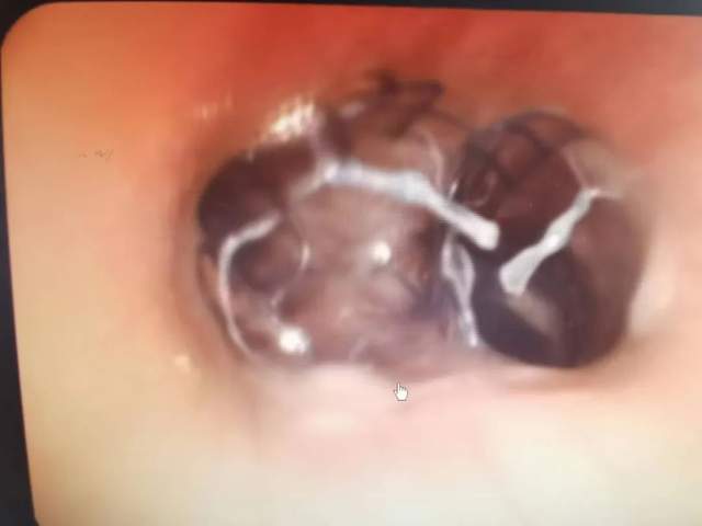 接診的施天生主治醫(yī)師查看患者CT發(fā)現(xiàn)左右支氣管完全阻塞,讓人擔(dān)心的是一旦痰堵或氣道痙攣,隨時有窒息的危險。