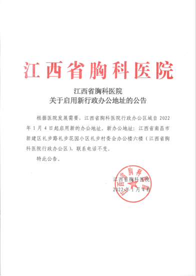 江西省胸科醫(yī)院關(guān)于啟用新行政辦公地址的公告