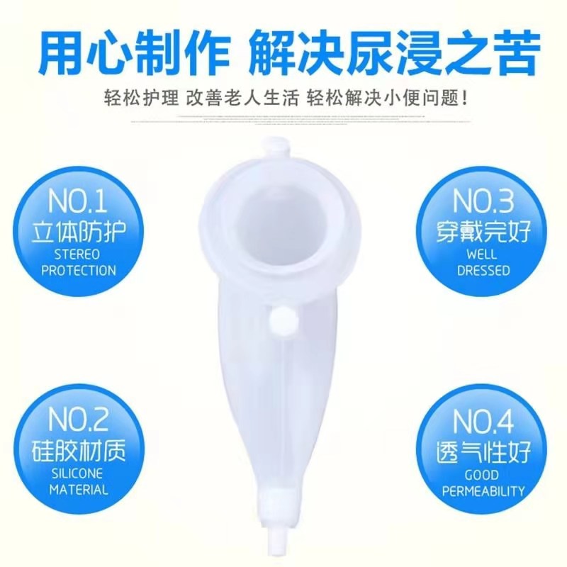 四、注意事項(xiàng):①安裝時(shí)應(yīng)仔細(xì)查看使用說明書,勿將接尿器接錯(cuò),避免造成漏尿。②使用前床上臀部位置鋪一層護(hù)理墊,保持床單位的清潔干燥。③腰部及陰囊部松緊帶松緊適宜,以免影響血液循環(huán),造成皮膚糜爛,要勤觀察腰部及會(huì)陰部皮膚變化。④做好個(gè)人衛(wèi)生,每天清潔會(huì)陰兩次,清潔骶尾部2-3次,皮膚干燥無異常后再穿上接尿器。⑤避免接尿器管道打折,扭曲,集尿袋應(yīng)低于膀胱區(qū),尿袋3/4滿時(shí)應(yīng)及時(shí)傾倒。⑥接尿器應(yīng)勤用溫水(<30℃)清洗。勿使用酒精,高濃度清潔劑等,以防加速材質(zhì)老化,溫水沖洗干凈后置于陰涼干燥處,切勿暴曬。⑦建議長期使用者定期更換接尿器,以免不衛(wèi)生造成皮膚過敏。⑧如有異常情況,應(yīng)及時(shí)報(bào)告醫(yī)護(hù)人員。