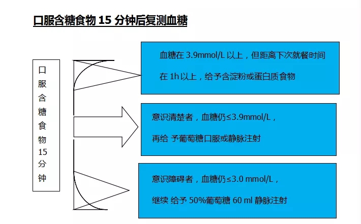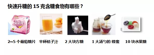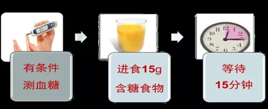 記住兩個(gè)“15”(進(jìn)食15克碳水化合物,每15分鐘測(cè)血糖一次)