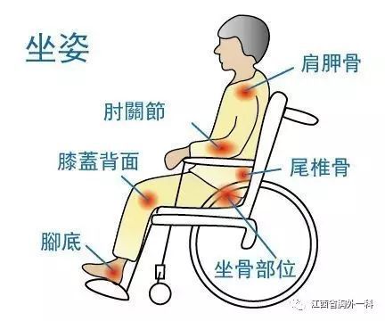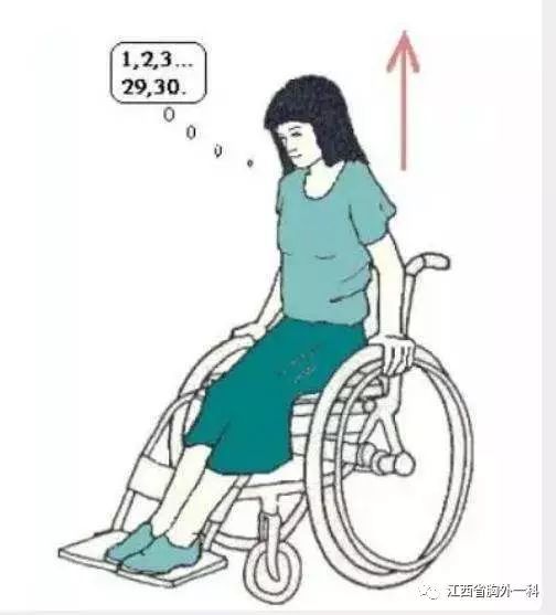 05選擇合適的座椅,如果患者上肢強(qiáng)壯,可鼓勵(lì)他們每坐30分鐘便用雙手支撐起身體30秒,以減少坐骨產(chǎn)生壓瘡的機(jī)會(huì)。騰空身體前一定要先固定好輪椅,最好翻起腳踏板,雙腳踩于地面。