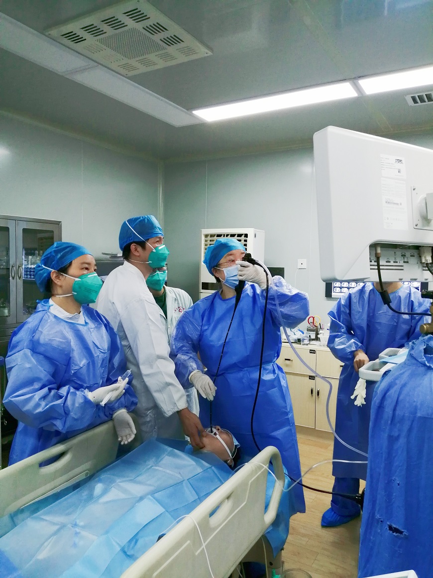 科負(fù)責(zé)人、主任醫(yī)師熊玉紅分析病情后,認(rèn)為需要完善氣管鏡檢查,一方面了解患者支氣管管腔情況,排外支氣管結(jié)核,另一方面通過氣管鏡對(duì)有病變的部位生理鹽水灌洗,獲取灌洗液標(biāo)本送檢排外耐藥結(jié)核病。可是患者因多年精神疾患,目前行為舉止如同3歲小兒,要她配合局醉下的氣管鏡操作幾無可能,科室討論后決定申請(qǐng)全麻下無痛氣管鏡檢查。由此,多學(xué)科會(huì)診,五方聯(lián)動(dòng)為患者“支招”。