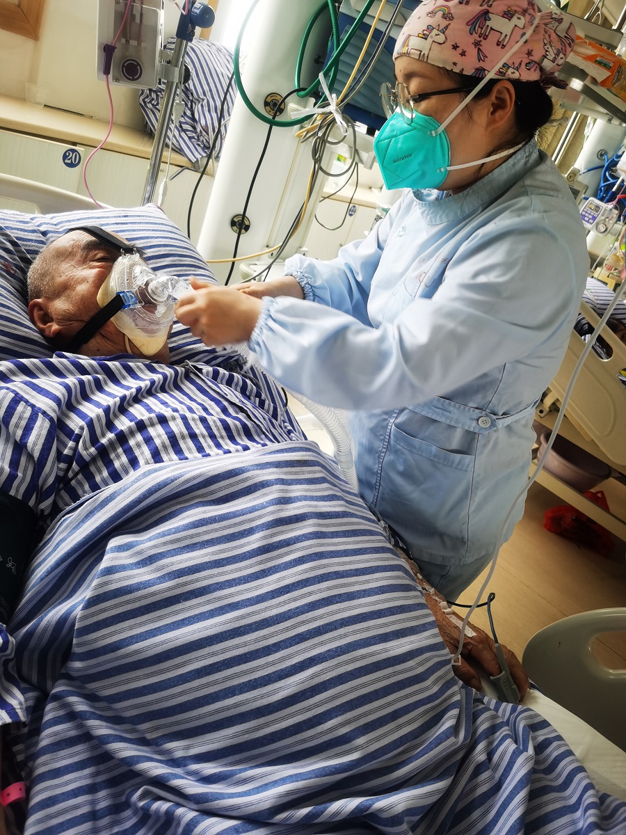 在江西省胸科醫(yī)院重癥醫(yī)學科,有一位已懷孕28周的準媽媽魏琦慧,她身材小小卻滿身力氣,干起活來毫不含糊。這會兒,剛坐下來處理醫(yī)囑沒幾分鐘,魏琦慧護士又隱約聽到15床患者的敲床聲,她立即放下手中的工作趕過去。15床的爺爺今年已是84歲高齡,因病需要持續(xù)佩戴無創(chuàng)呼吸機改善胸悶、氣逼,老人家因為感染重、痰液多,經(jīng)常需要護士備好紙巾協(xié)助排痰并時刻維持呼吸機管道的通暢。因為時常需要來回走動,她經(jīng)常忘了自己是一個孕婦。科里的姐妹們總想關照準媽媽,她卻說:“護士的使命就是守護病人的健康,既然選擇了這個職業(yè)就不后悔,再說了,孕婦需要適量做一些運動,多走動對我和寶寶都有好處。”