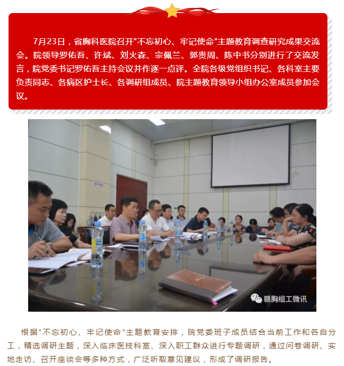 省胸科醫(yī)院召開“不忘初心、牢記使命”主題教育調(diào)查研究成果交流會