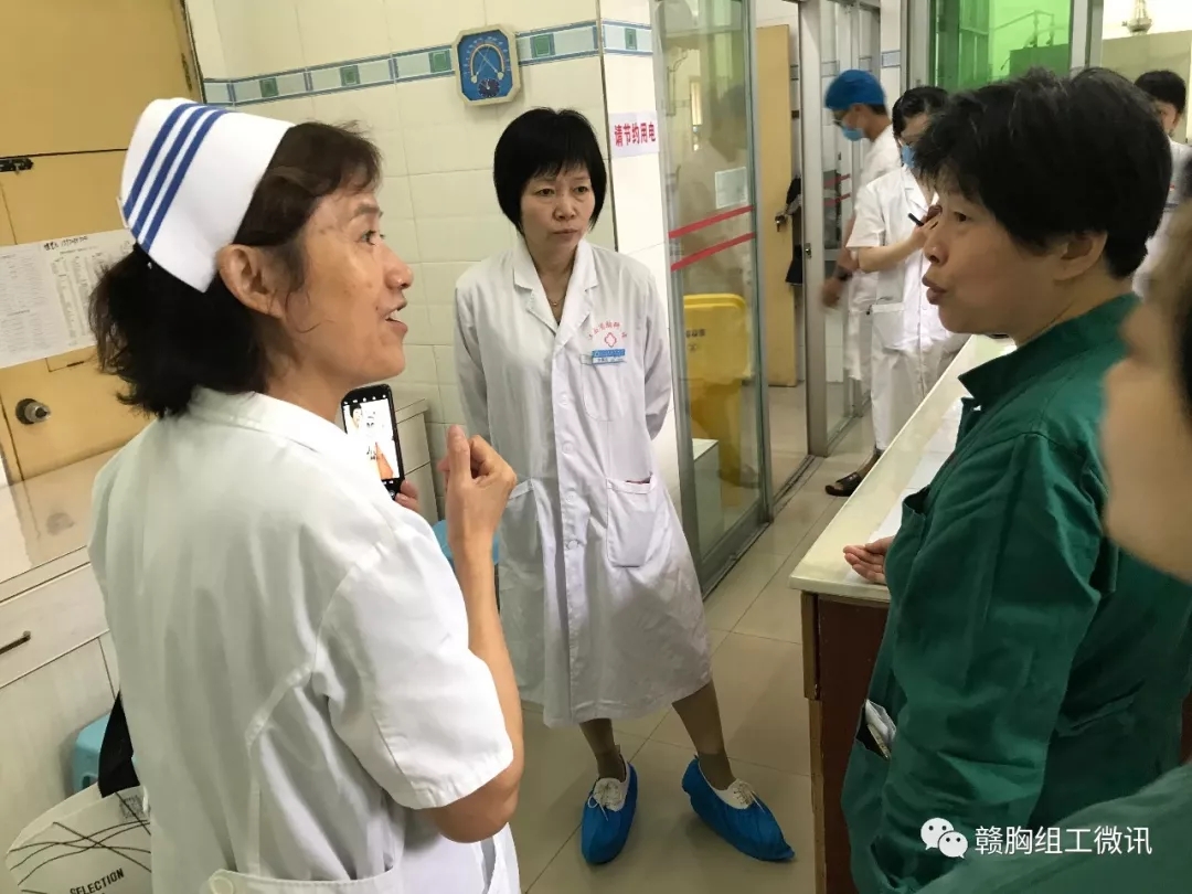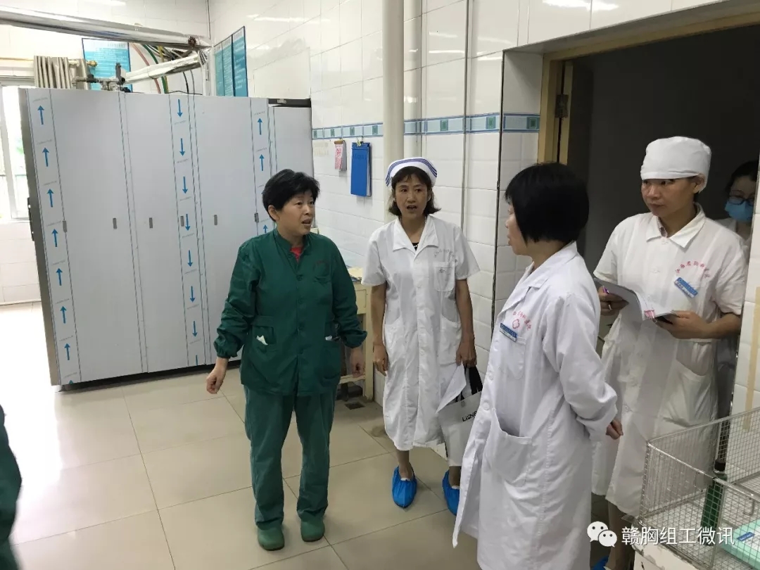 7月8日和9日,江西省胸科醫(yī)院“不忘初心、牢記使命”主題教育專項(xiàng)調(diào)研四組在副院長宗佩蘭帶領(lǐng)下,深入醫(yī)院住院部供應(yīng)室進(jìn)行調(diào)研。護(hù)理部主任胡曉英、范秀球護(hù)士長和機(jī)關(guān)第三支部書記蘇琦陪同調(diào)研。