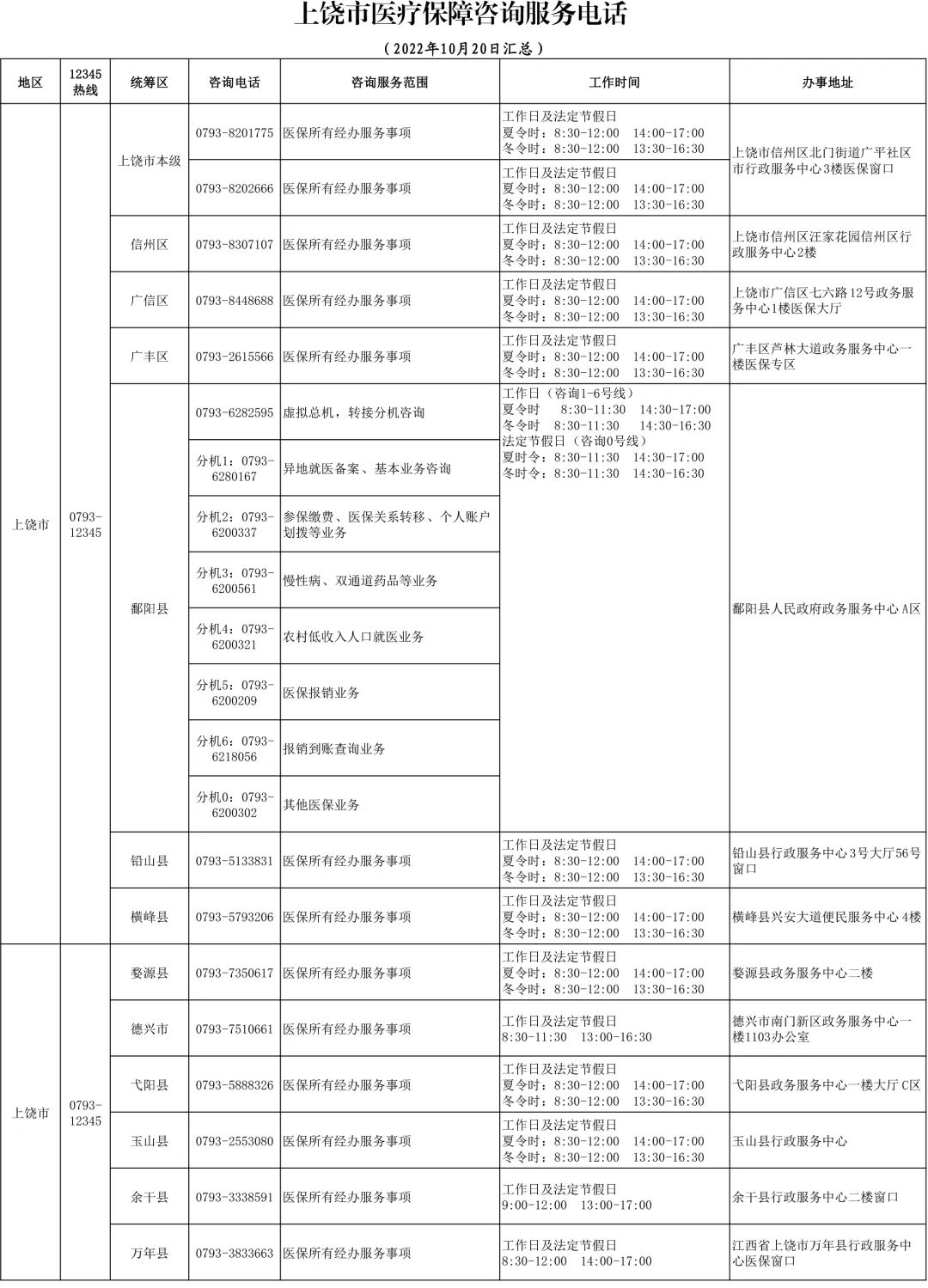 十、上饒市醫(yī)療保障咨詢服務(wù)電話