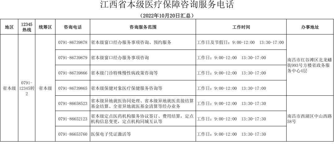 一、江西省本級醫(yī)療保障咨詢服務(wù)電話