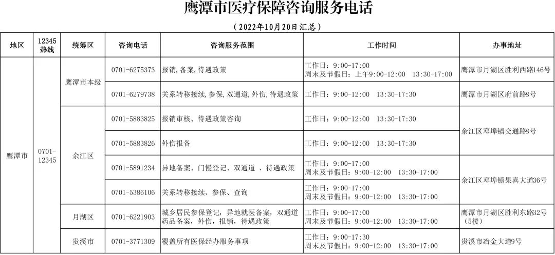 七、鷹潭市醫(yī)療保障咨詢服務(wù)電話