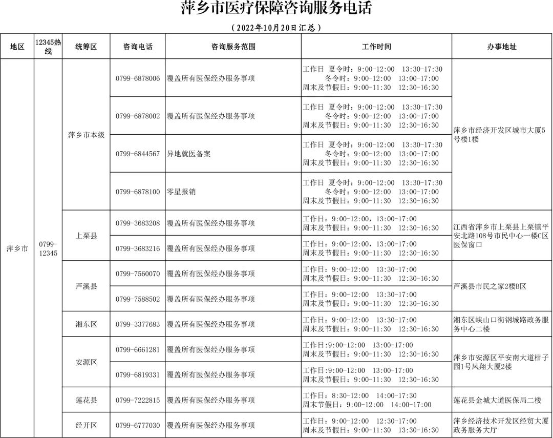 五、萍鄉(xiāng)市醫(yī)療保障咨詢服務(wù)電話