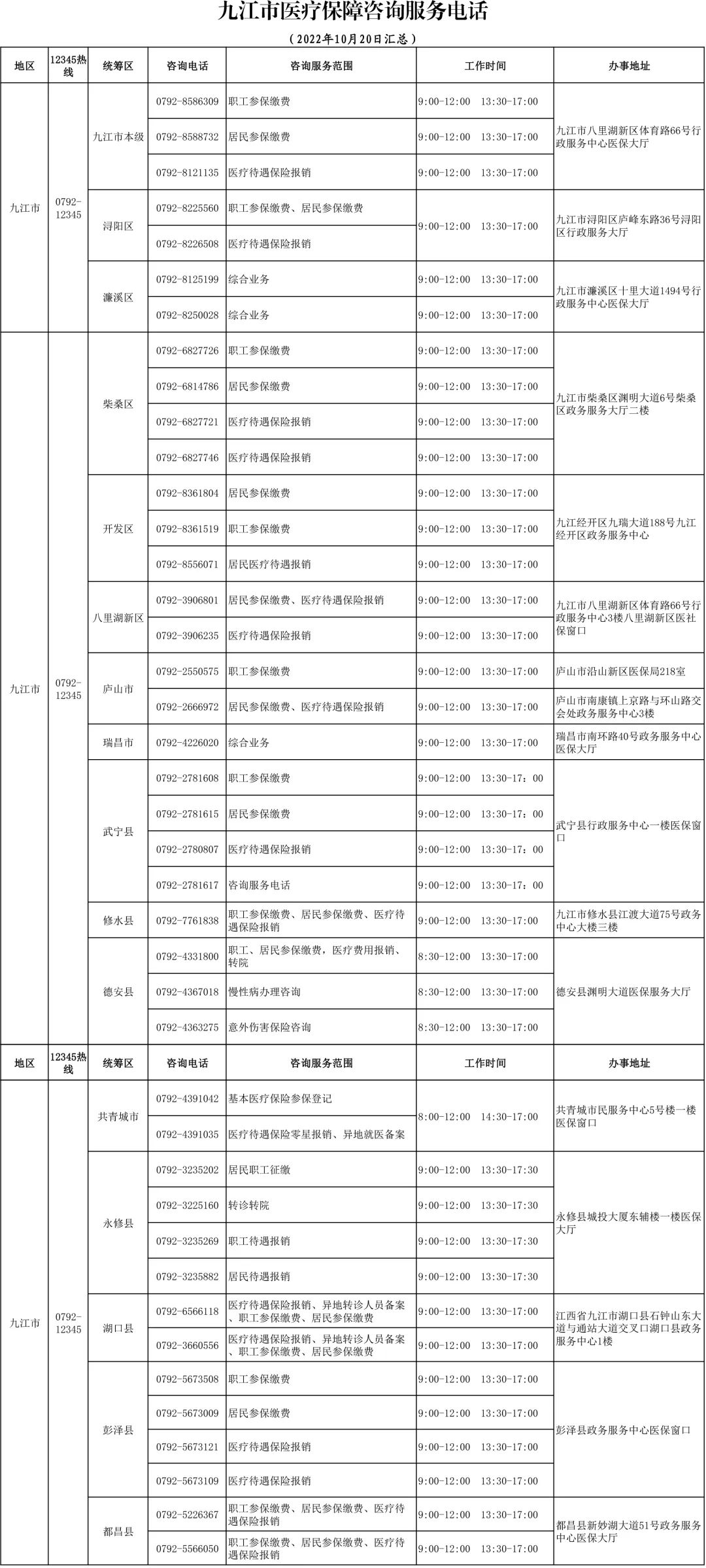 三、九江市醫(yī)療保障咨詢服務(wù)電話